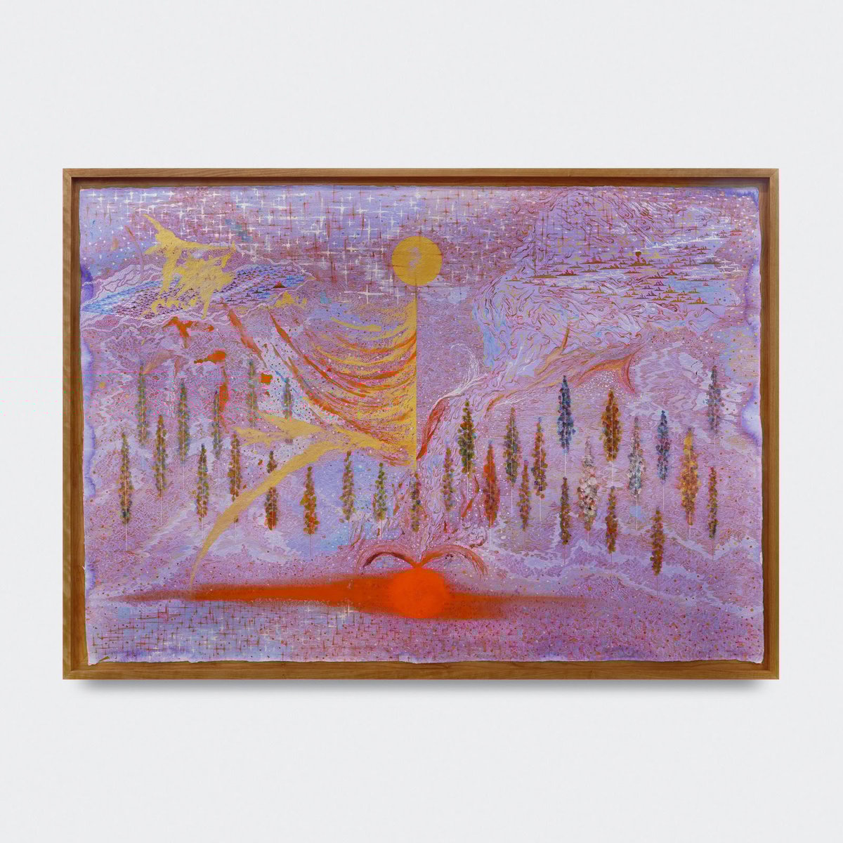 Funck’s use of varying techniques and mediums—collage, watercolour, pencil, and crayon—reflects these plays of disappearance and reappearance. We see his familiar motifs in transitional shades and alternative forms.