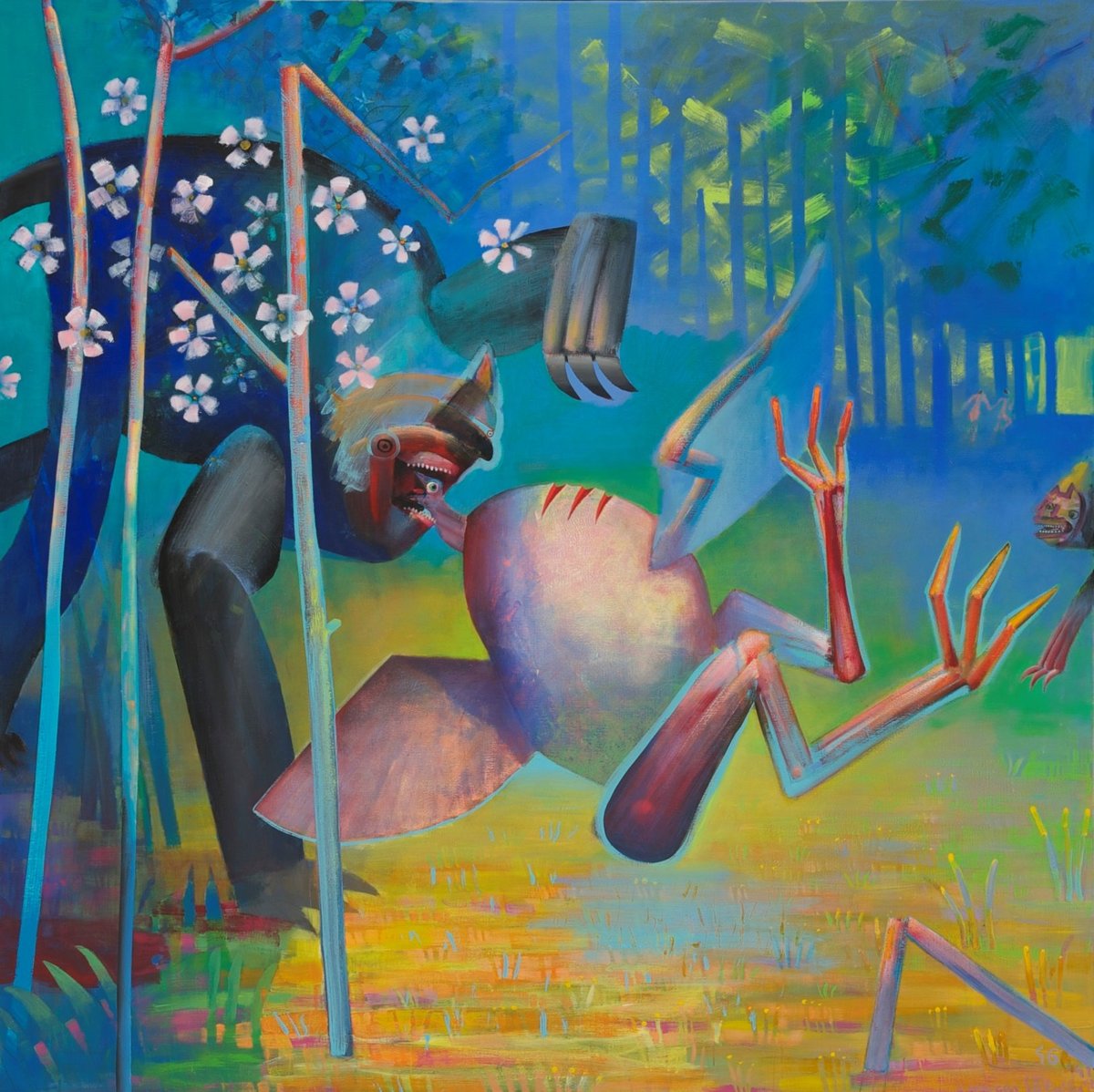 En af troperne i Arne Haugen Sørensens motivverden er paradisets have. Netop dette var også Fynbomalerne optaget af at afbilde i deres kunst, om end på en ganske anden måde. Johannes og Alhed Larsen virkeliggjorde endda deres bud på paradiset i deres have på Møllebakken – et sted, der endnu den dag i dag emmer af ro og åbenhed. Også fynbomaleren Fritz Syberg skabte et sig et paradis omkring sit hjem på Pilegården og tilbragte somrene i det idylliske landskab ved Fyns Hoved; begge steder bruges som motivverden for det Sybergske paradis. I Arne Haugen Sørensens billeder brydes den paradisiske idyl af vildskaben og kaosset; mens f.eks. Johannes Larsen aldrig malede en bloddråbe på sine billeder – selv ikke på billederne af de døde fugle.