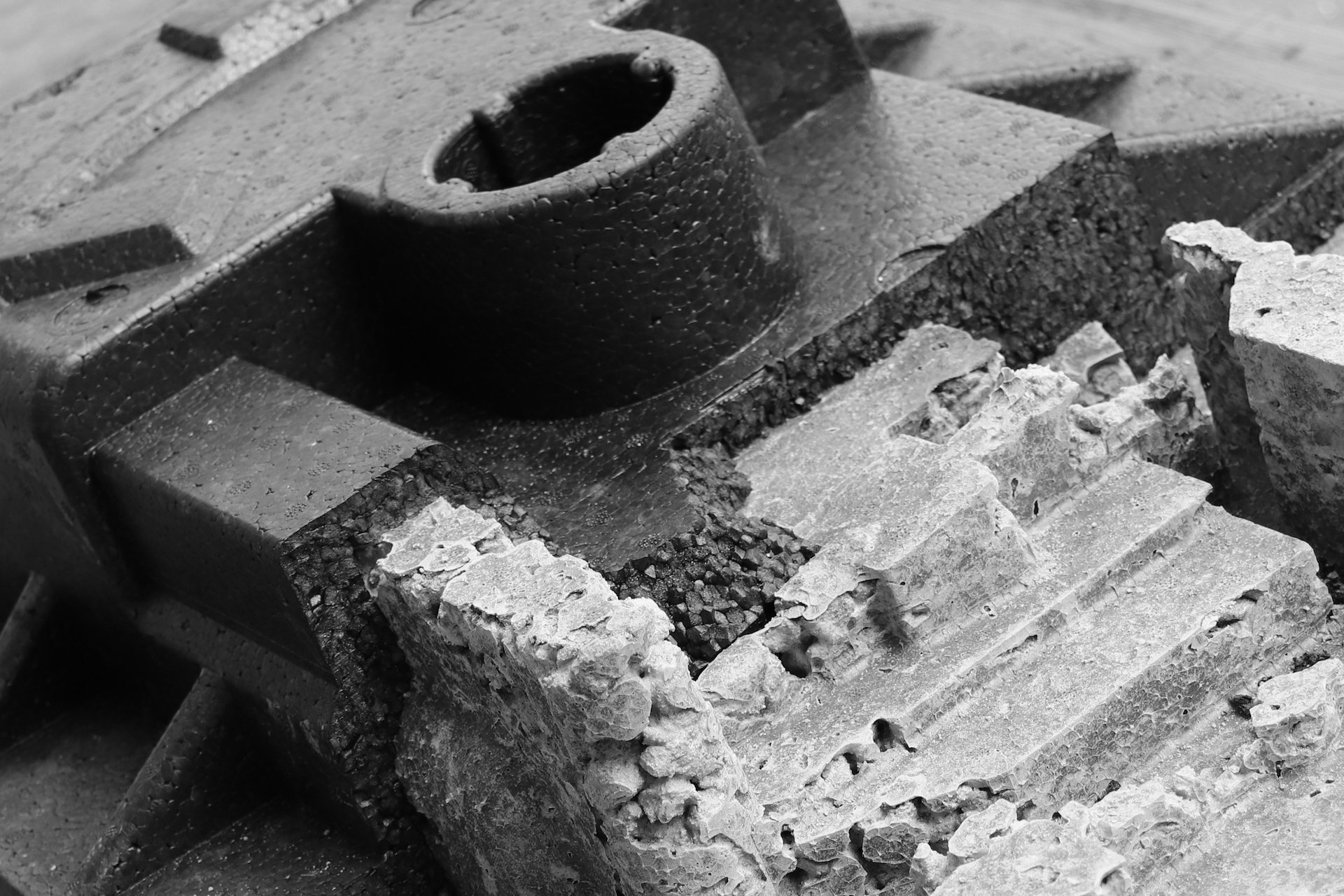Joseph Capgras and Reboul-Lachaux first called the syndrome “l’illusion des sosies”, which can be literally translated as “the illusion of look-alikes.” Styrofoam packaging are an example of our consumerist society where they are used only once for the transportation and safety of the objects, shipped and sold all over the world. They perfectly replicate the shapes and forms of the objects they encase, becoming industrial imprints of our ways of living.