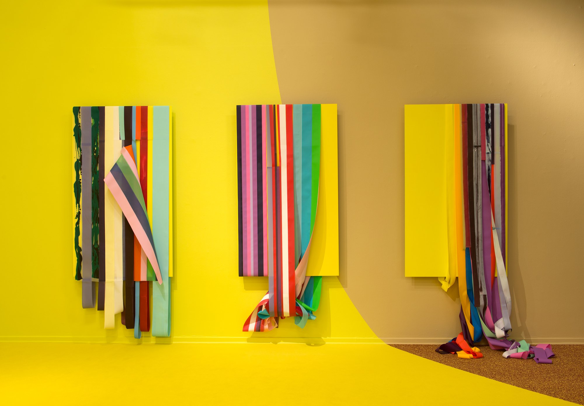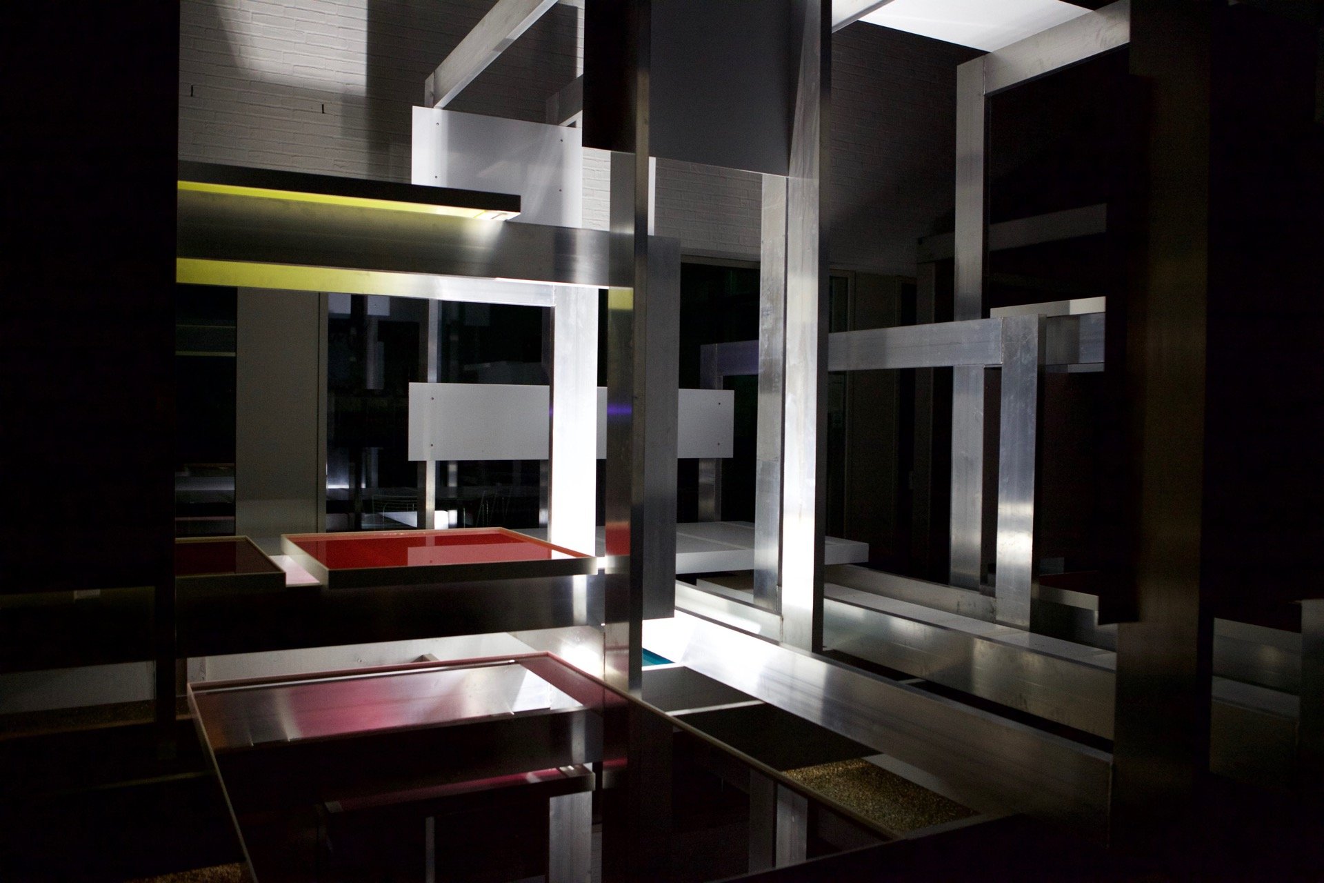 På Esbjerg Kunstmuseum skabes der således forbindelser direkte til eksperimenter i museets unikke æstetiske laboratorium. Samtidig tager selve installeringen af værkerne afsæt i museets eksperimenterende tilgang til udstillings- mediet, så de – helt i de konkrete kunstneres ånd – indgår i et dynamisk og sanseligt flow, hvor skellet mellem flade og rum nedbrydes og dermed inddrager beskueren på en direkte måde. Fx er væggene i udstillingsrummene malet op med store geometriske former – formelementer, inspireret af Paul Gadegaards altomfattende værk på Den sorte fabrik i Herning (1957-60), som er det måske mest eklatante eksempel på den konkrete kunsts bevægelse væk fra forankringen i kunstinstitutionen og staffeliformatet. I konceptuelle gråtoner føres dette totalværk så at sige nu tilbage ind i museumsinstitutionen, hvor man i anledning af udstillingen også vil kunne opleve udvalgt originalinventar fra netop Den sorte fabrik.