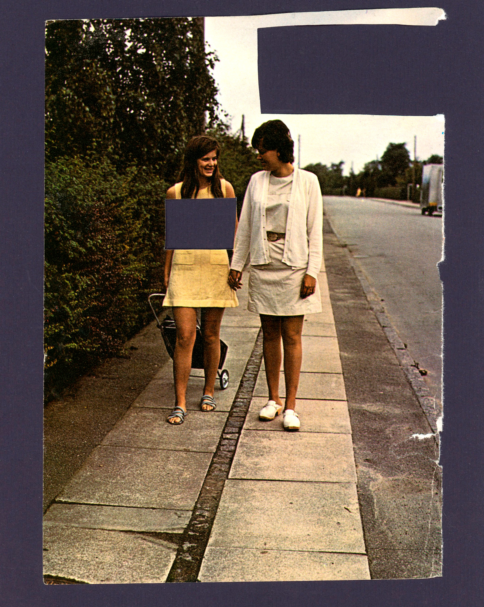 Der er mange firkanter og nogle trekanter og et maleri af et lille a, men også med små trekanter.