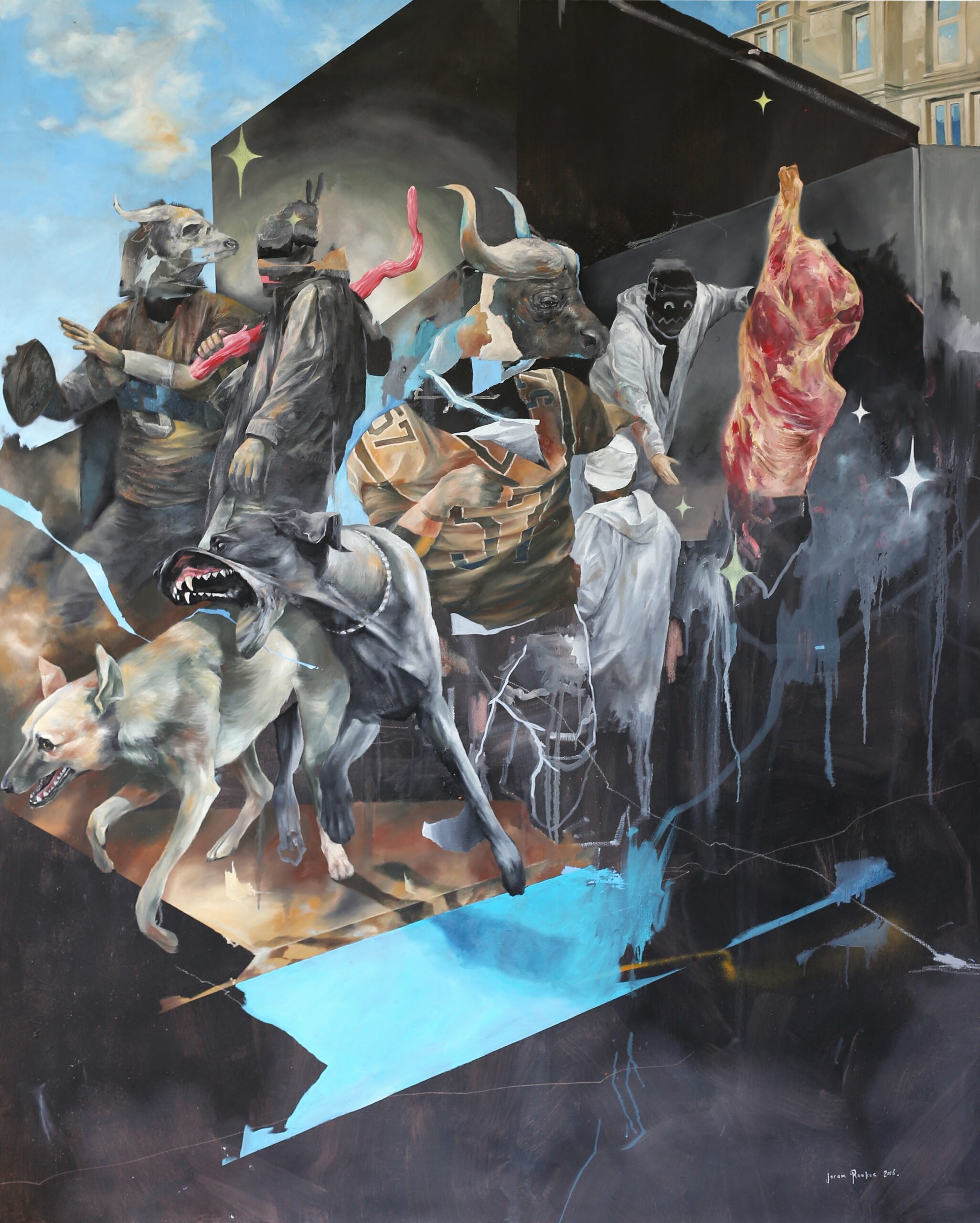Joram Roukes er en hollandsk Maler som efter sin Master på Groningen universitet rejste til Los Angeles for at raffinere hans lange kunstprojekt der skyder skarpt efter Amerikansk popkultur.