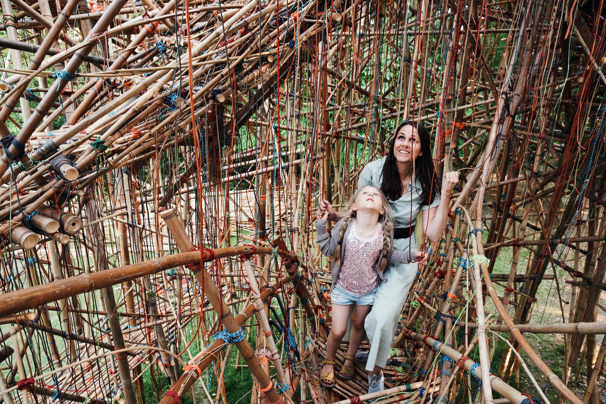 Kunst er noget, man engagerer sig i, noget som inviterer dig indenfor, ja sågar noget du kan klatre i! I hvert fald på Ordrupgaard. På Kunstlegeplads Ordrupgaard, i museets grønne park, kan børn og voksne udforske en række kunstværker, som ikke kun er skønne for øjet, men også udfordrer sanserne. I 2018 indvies to nye værker på Kunstlegepladsen; Doug og Mike Starns gigantiske, vertikale bambuslabyrint Geometry of Innocence, samt Terunobu Fujimoris nyfortolkning af det traditionelle japanske tehus.