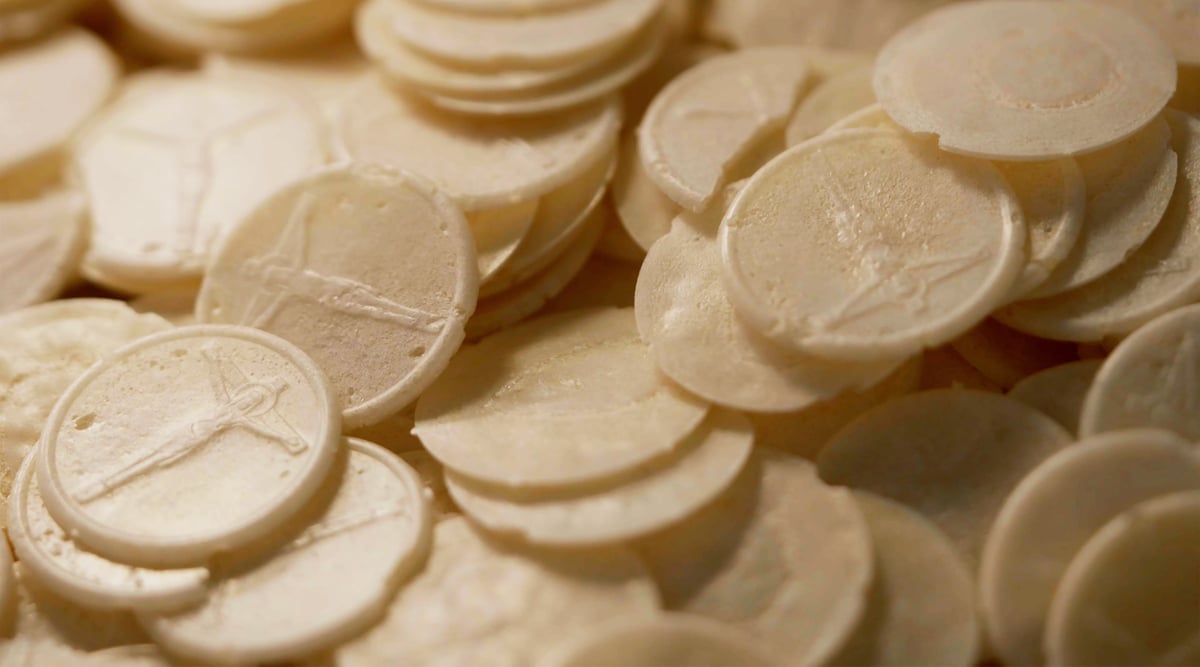 Gennem dokumentariske og iscenesatte optagelser genaktiveres det rituelle som en vej ind i noget større, hvor ekkoer på tværs af tid og sted fastholder det uhåndgribelige. I Leang Leang-grotternes mørke klamrer forhistoriske håndaftryk sig til klippevæggen og rækker ud mod os gennem tidens lag. I Berlins Phantom Bar fremmanes resterne af en netop opbrudt fest, når koreografen Myriam Lucas bevæger sig gennem knuste glas og tomme poser i en dans, der fastholder nattens efterskær. Samtidig slår rytmen fra værkets elektroniske lydside ned i bageriets kælder, hvor en udtjent maskine trykker oblater som kræver manuel kontrol, inden de sendes ud til alle landets kirker.