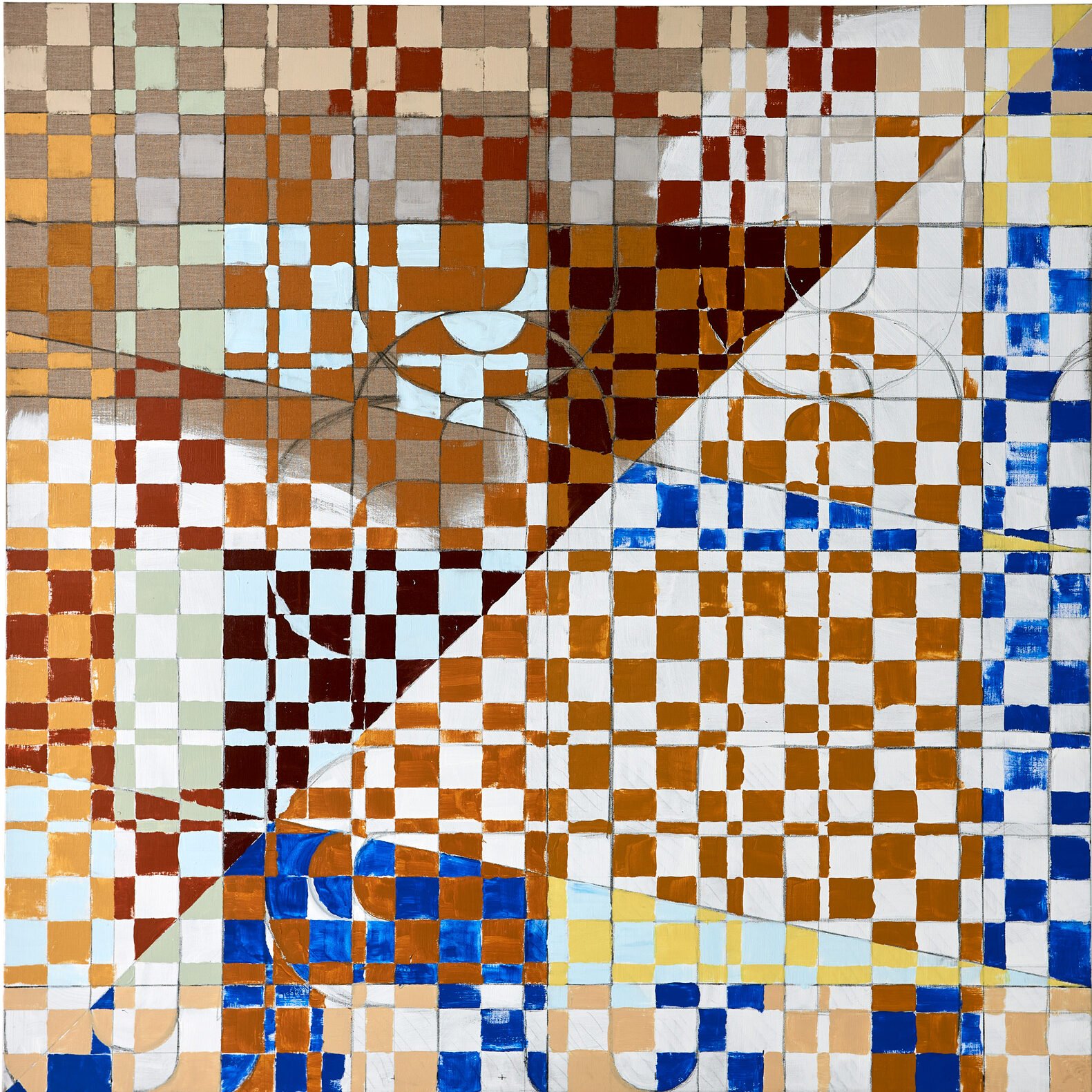 Wilson Saplana er glade for at kunne præsentere billedkunstner Mette Winckelmanns første soloudstilling i galleriet, Lend and Borrow, hvor kunstneren viser nye geometriske, stoflige malerier, der undersøger tilsyneladende faste størrelser som økonomi, magt og frihed.