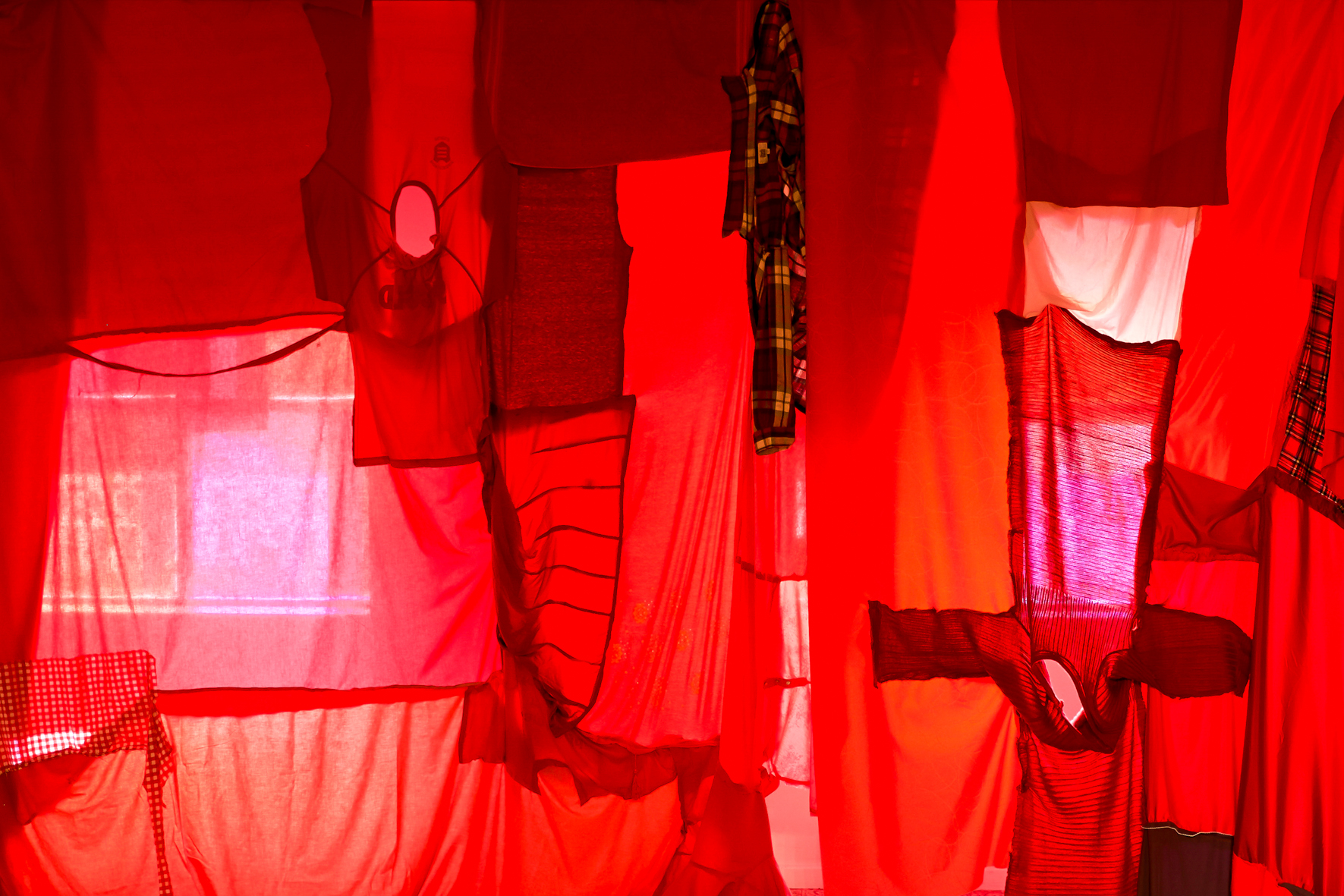Bag udstillingen finder vi de tre kunstnere Anne Marie Ploug, Melou Vanggaard og Pernille Kløvedal Helweg. RÅBERI OVER HEGNET har siden gruppens dannelse i 2013 undersøgt det at arbejde kollektivt og ’råbe’ i flok.