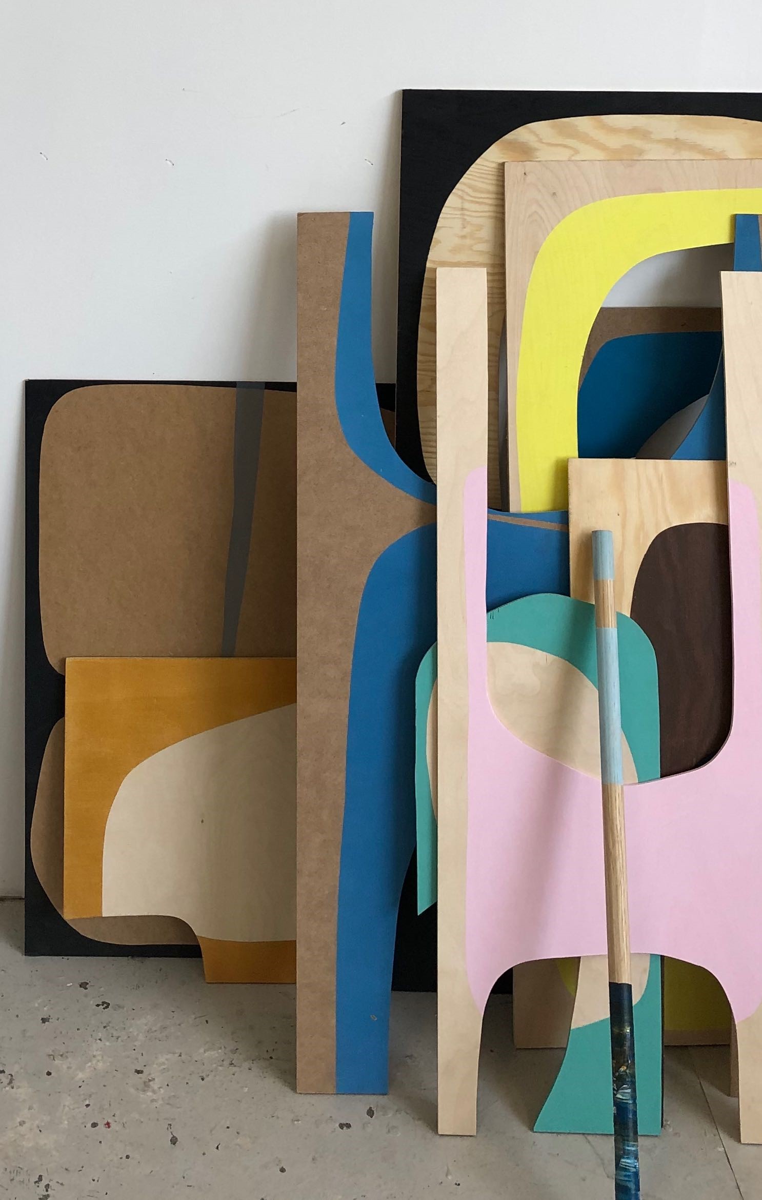 Anneli Olesen er grafisk kunstner, som udover at arbejdet med grafisk tryk på papir, arbejder med grafiske former og objekter på træplader.