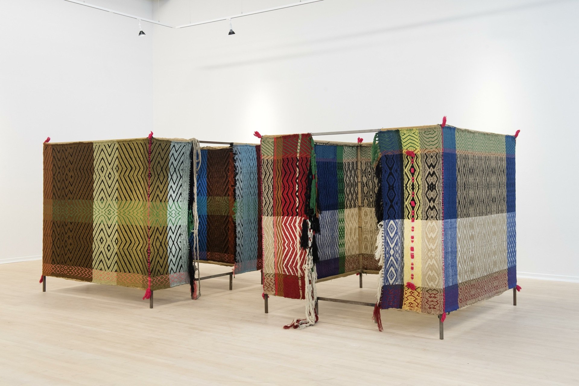 vævning. I de vævede værker arbejdede hun med skulpturelle og rumlige elementer i form af søjler og teltlignede strukturer