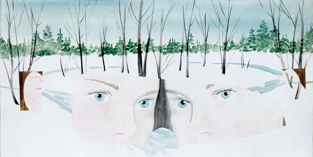 De hybride væsner, der i flere år har været et greb hos kunstneren, er fotografisk klare menneskeansigter, sat på fuglekroppe. En form for collage, hvor to betydninger sættes sammen for at danne en tredje?