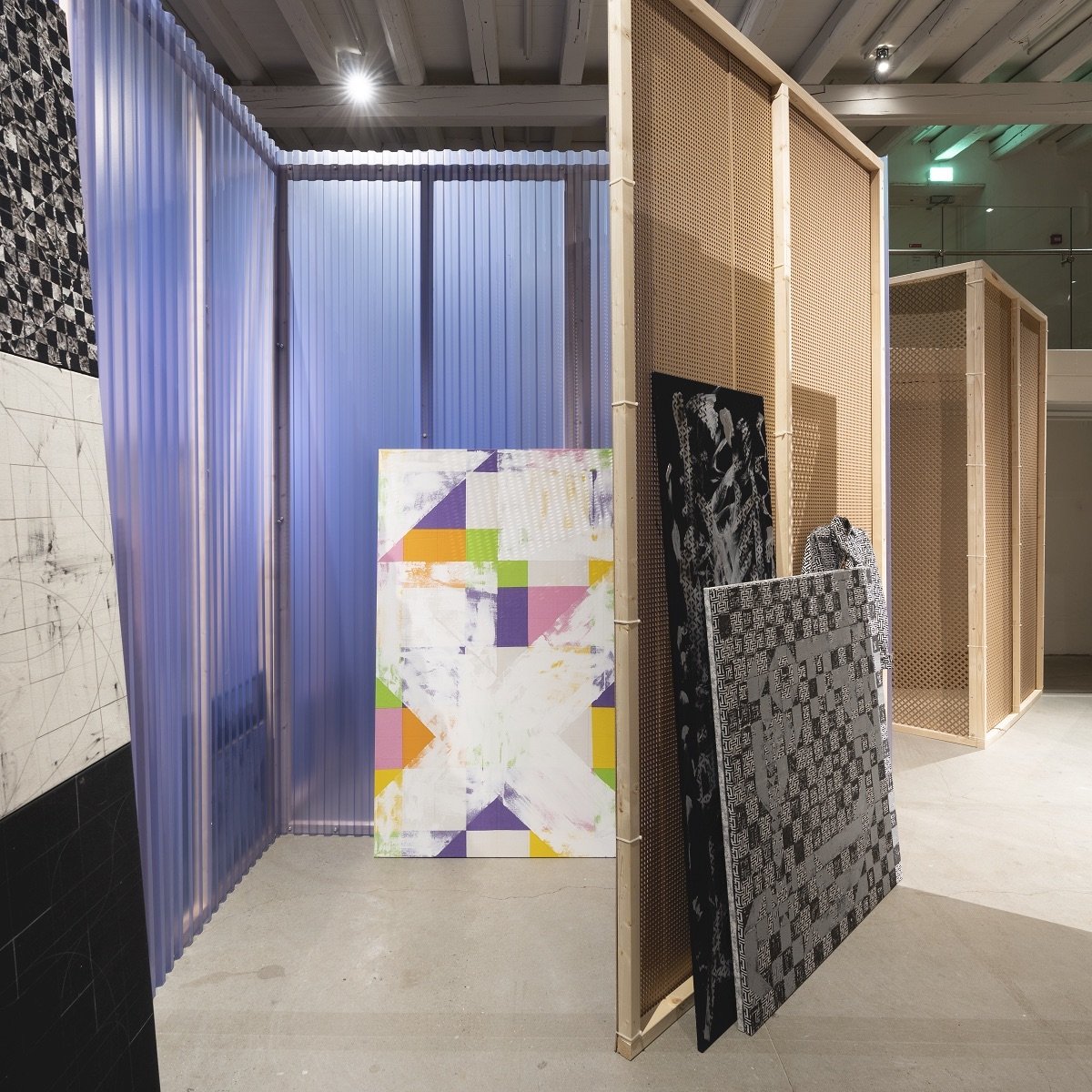 Mette Winckelmanns enkelte værker er opbygget lag på lag, med forskellige materialer, men uden at søge at skjule processen. Tværtimod gennemtrænges hvert lag maling og stof af det bagvedliggende, hvilket afslører de geometriske grid, der i så høj grad præger Winckelmanns kunst.