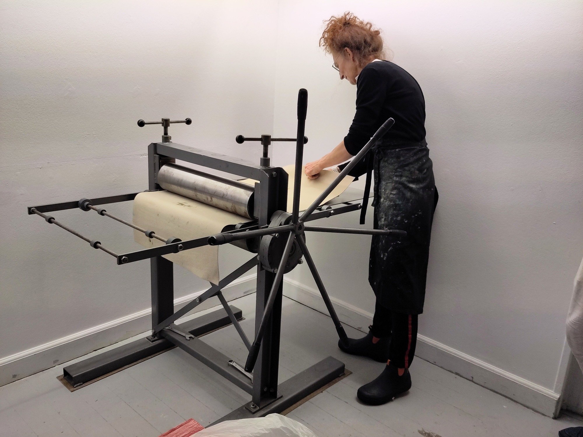 A demonstration of the graphic printing press in the exhibition room and an introduction to different graphic printing methods with examples from GrafikVen