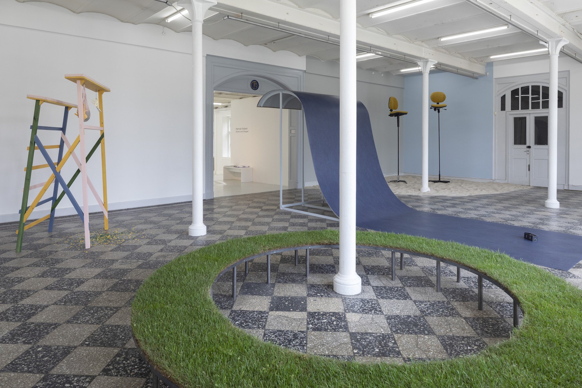 Det ligner noget, der kunne bruges til noget, og det ligner noget, der betyder noget, men det kan ikke bruges, og hvad det betyder er ikke indlysende. Hannah Anberts udstilling Slower and Cheaper består af en række fysiske metaforer om arbejde, ofte skabt af kontormaterialer, der omformes, så de mister deres oprindelige funktion og bliver nytteløse.
