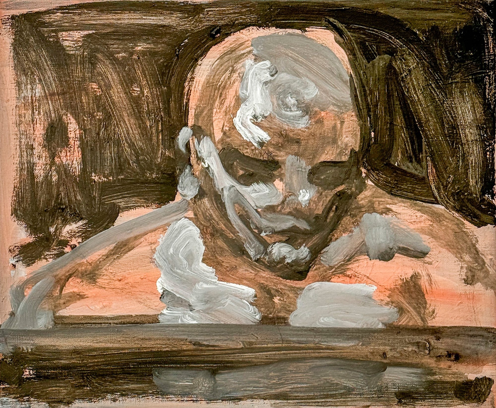 Disse billeder er blevet skabt som en slags dagbog. Under coronaepidemiens nedlukning begyndte jeg at male hjemme ved vores spisebord. Faktisk ved jeg ikke, hvad de afspejler eller hvad jeg vil med dem. De opstod mere fra en impuls. De fleste af billederne blev før eller siden gentagne gange malet over eller ødelagt. De billeder, der er udstillet her, har mærkeligt nok overlevet