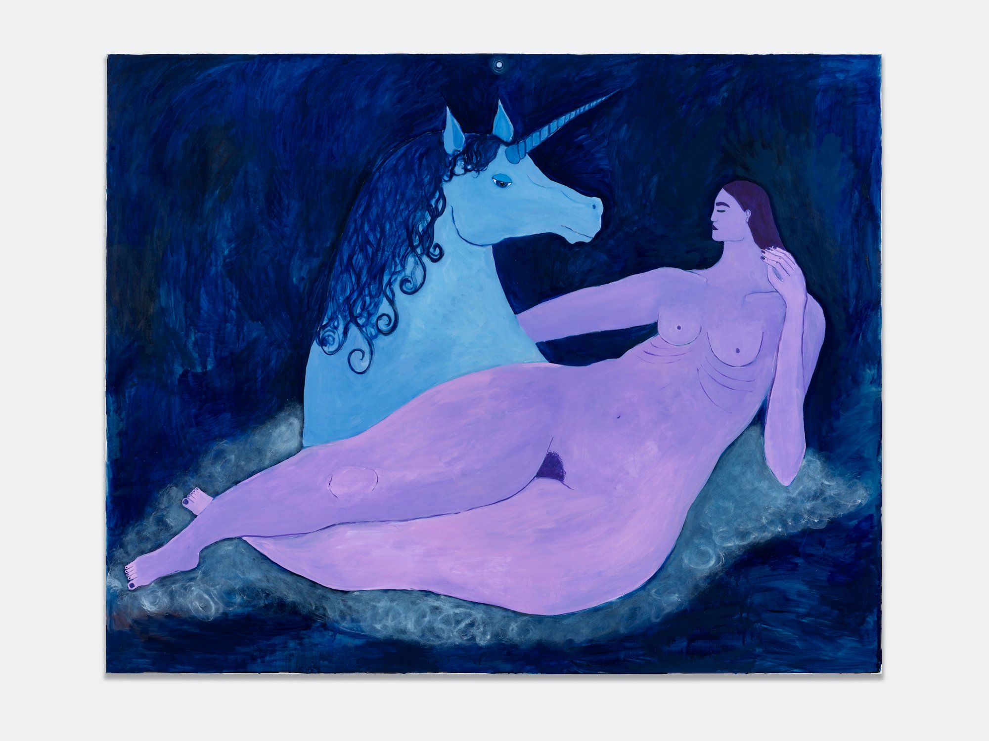 Ida Thorhauge, Woman and Unicorn, 2024. Olie på lærred 75 x 60 cm. Foto: Malle Madsen