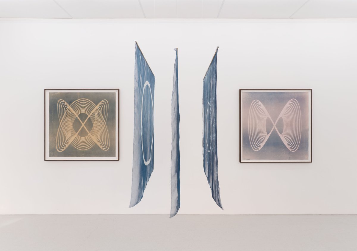 The exhibition moves across sound, electronics, paper, textiles, and botanical elements. At its core are the archetypal Lissajous curves, familiar from oscilloscopes and mathematical diagrams, which Foo brings into new visual forms.