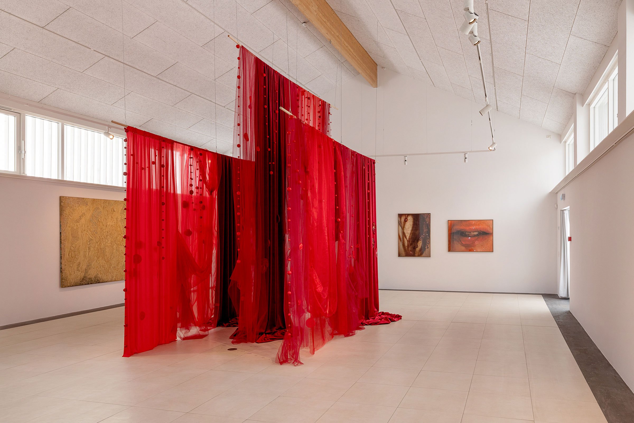 I Gammelgaards anden store hal præsenterer Marianne Grønnow endnu et monumentalt værk. Denne gang i form af en større teatralsk installation med fem meter høje draperier af indfarvede tekstiler og objekter, der integreres på malerisk vis.