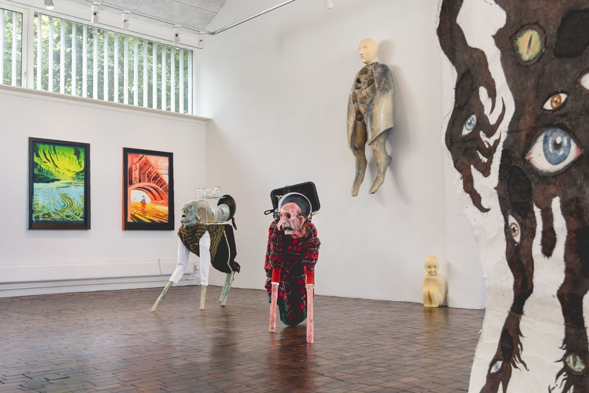 Der er tale om en lang række nye og enkelte eksisterende værker skabt af de syv danske samtidskunstnere Christina Hamre, Fredrik Tydén, Henrik Plenge Jakobsen, John Kørner, Julie Nord, Rolf Nowotny og Sahar Jamili. De har alle i deres praksis beskæftiget sig med det monstrøse som figur eller fænomen og præsenterer på udstillingen skulpturer, relieffer, vægmalerier, tegninger, grafik og installationer, der på forskellig vis indkapsler nogle af de mange urovækkende forhold, som præger vores tid.