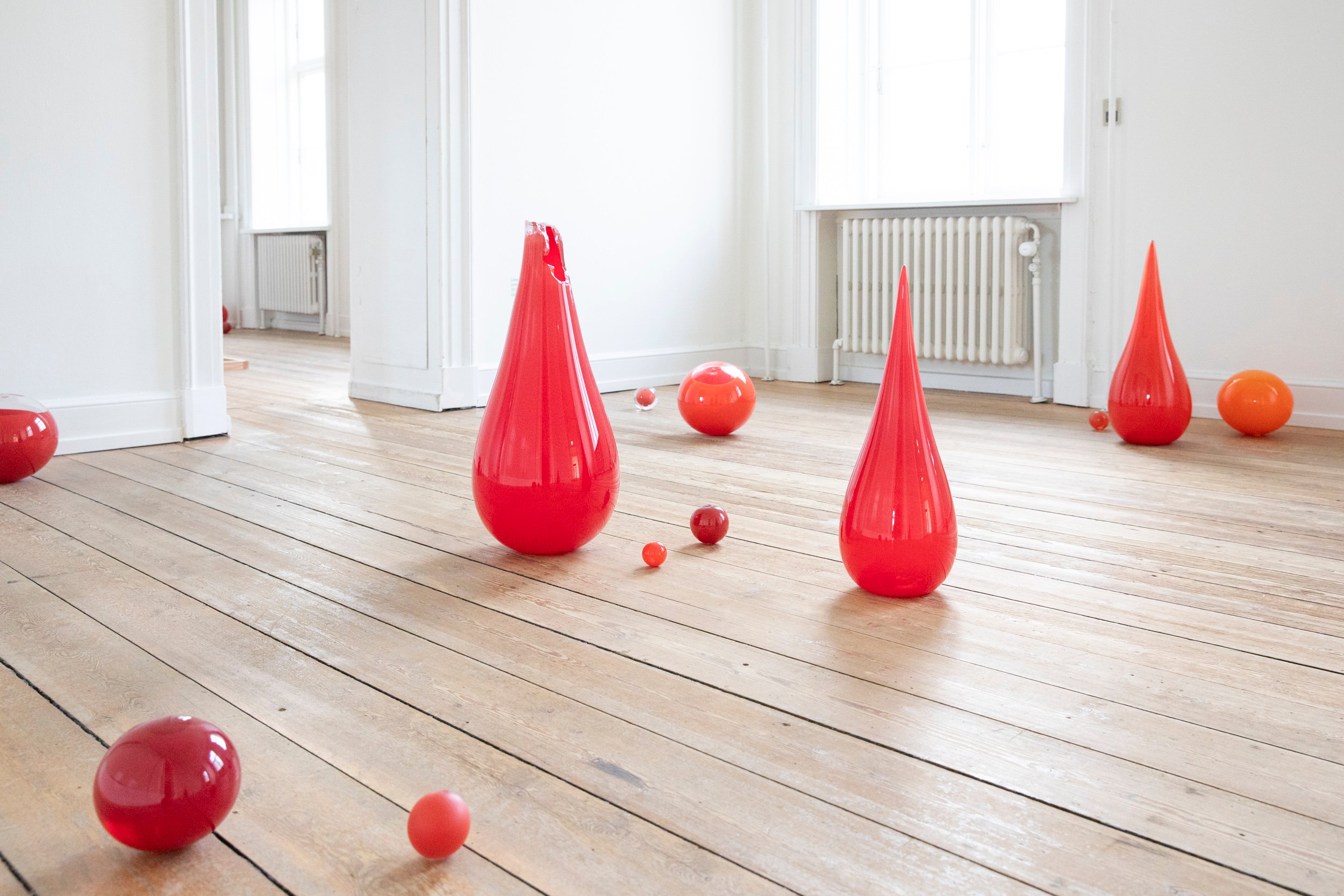 Tove Storch, Uden titel (dråberne/øjnene/kuglerne), glas, 2024. Foto: Kasper Palsnov/Glas