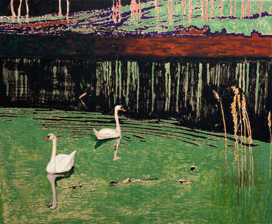 Mamma Andersson (f. 1962) er en af Sveriges fineste malere, der repræsenterede Sverige ved Venedigbiennalen i 2003, hvor jeg første gang blev opmærksom på denne fremragende realist, der dog altid lader sine værker med en underfundig poesi. Nu udstiller hun sammen med Tal R (f. 1967) i en spændende malerisk dialog, hvor de to kunstnere udfordrer hinanden ved at male de samme motiver og anspore hinanden til at gå til yderligheder i en morsom billeddyst. Udstillingen Svanesang kan dels ses i Galleri Bo Bjerggaard på Flæsketorvet, dels hos Magnus Karlsson i Stockholm, så også udstillingsmæssigt er der tale om et interskandinavisk parløb mellem to store gallerier.