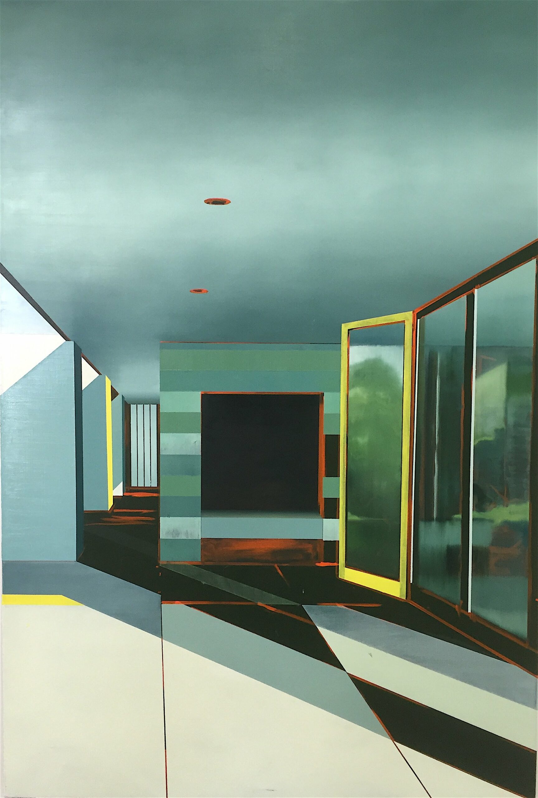 På sin nye udstilling The Territorial Trap hos Galleri Kant går han et skridt videre med et lidt mere frit og fabulerende formsprog end hidtil, og det er knaldgode billeder. Angiveligt drejer det sig om at undersøge de grænsedragninger, der findes mellem rum og territorium med nogle til tider flydende overgange, hvor omgivelserne invaderer de intime rum, der således ikke længere yder den beskyttelse, som arkitektur sædvanligvis er garant for.