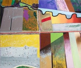 Men det handler også om de grænsedragninger, der er mellem landene, antydet i titler som No Nation is an Island, Tectonic Dreams Against the Great Outdoors foruden titelbilledet. (Tektonik er ifølge Den Store Danske læren om udformning og sammenføjning af formelementer til en helhed, LB). Hermed bliver malerierne en metaforisk kommentar til de millioner af mennesker, der i disse år flygter fra krig og elendighed i Mellemøsten og Afrika i håbet om at få en bedre tilværelse i de vestlige samfund.
