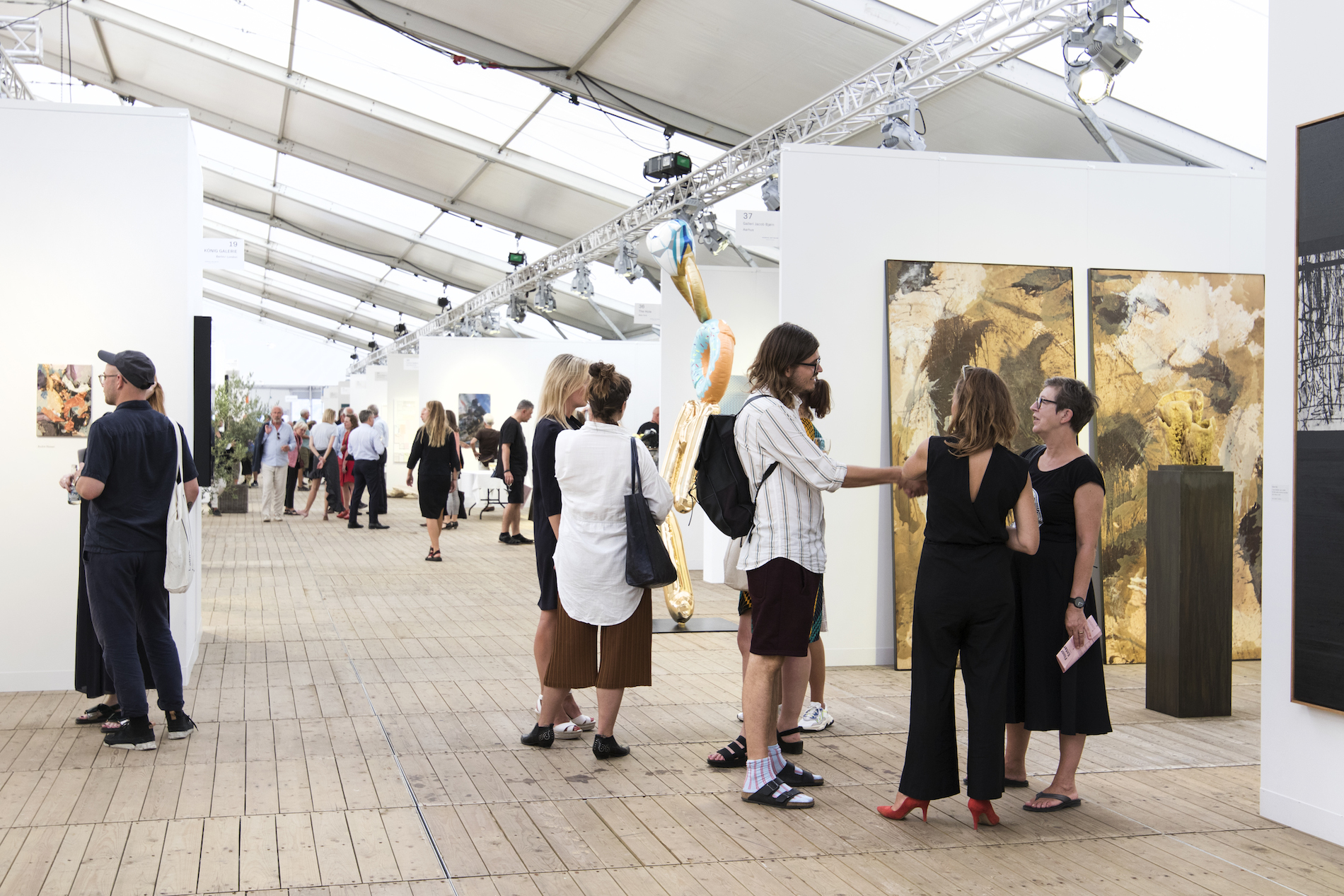 Chart I Chart Art Fair på Charlottenborg deltog i år 28 gallerier fra Norden, mens 11 nordiske designgallerier foruden en række individuelle designere deltog i Chart Design Fair i Den Frie Udstillingsbygning. Herudover kunne man opleve særudstillingen Chart Emerging på Charlottenborg med en række unge, nordiske kunstnere. Denne del af udstillingen var lagt i hænderne på kuratoren Helga Just Christoffersen fra Art Hub Copenhagen. Desuden bød Chart på et ambitiøst og meget omfattende program med talks, musik og arkitektoniske pavilloner, opstillet i Charlottenborg gård. Nanna Hjortenberg stod i år i spidsen for Chart, der er en nonprofit organisation. Vinderen af Chart og Artproofs pris 2019 blev den finske fotograf Ville Kumpulainen, der var repræsenteret af Persons Projects i Helsinki og Berlin. Vinderen af Charts Arkitekturpris blev Sultan ved fire kvindelige arkitekturstuderende, der havde genanvendt Sultan-madrasser fra IKEA og heraf havde skabt en bæredygtig pavillon. Enter Enter Art Fair fandt sted i et 3000 kvm stort telt på Refshaleøen og var lagt i hænderne på kuratorerne direktør Julie Alf og kurator Caroline Bøge. I messen deltog 31 danske og internationale gallerier. Foruden selve messen blev der budt på et omfattende program med talks og live performances med fokus på de digitale medier, kurateret af danske Irene Campolmi. Enter Art Fair var etableret i samarbejde med samlerapp’en Artland, der ud over at vise messens stande i 3D, fremover også formidler galleriernes udstillinger digitalt, så den virtuelle besøgende kan følge de skiftende udstillinger hjemmefra. Hermed er den digitale udstillingsform for alvor ved at blive implementeret, og messen appellerer således direkte til de unge og yngre kunstsamlere. Enter Art Fair ejes foruden af galleriparret Hans og Julie Alf også af Lars Seier Christensen, Simon Stampe og Michael Gaarmann.
