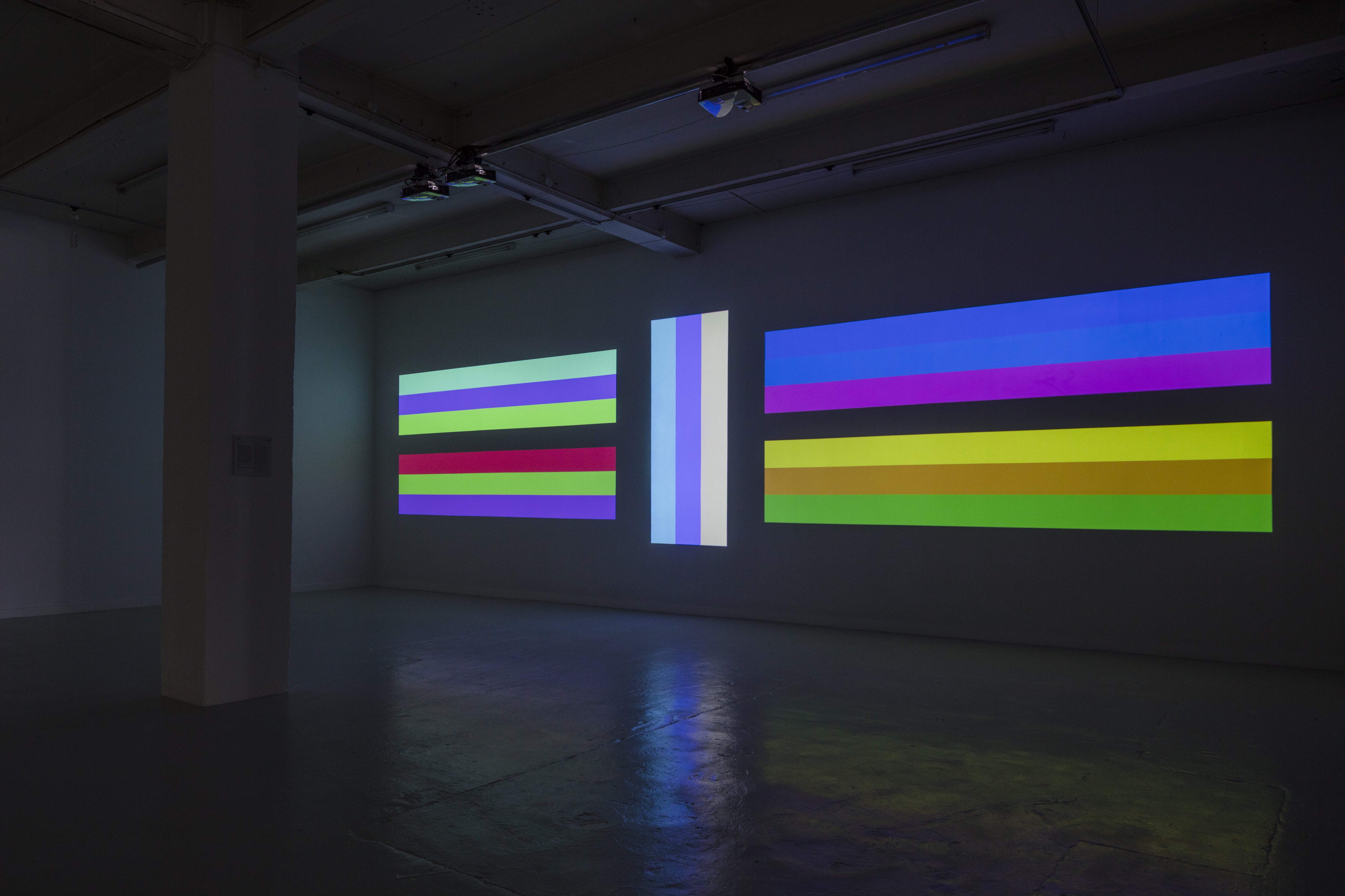 På udstillingen lukkes man ind i en ganske særlig verden, hvis æstetiske virkemidler trækker tråde til såvel de russiske suprematisters formelle formsprog, Piet Mondrians strenge grid og Josef Albers’ kvadrater som til Barnett Newmans linjer og Poul Gernes’ skydeskivebilleder. Man er midt i en vibrerende verden af farver, stærkt lys og geometriske former, der pulserer i Laustens elektriske stue.