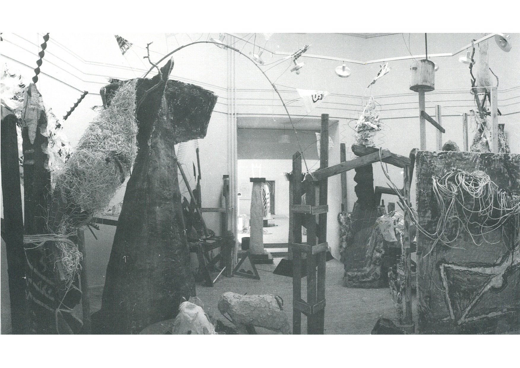 Og så er der installationen med graven. Nej, ikke graven hvori kunsten begraves. Men hvorfra den ekskaveres, udgraves. Bagved ekskaveringen er der en ’green screen’ – en grøn stofskærm som tillader projektioner af andre billeder som baggrund. Her er plads til nyt. Til andet. Til manipulationer. Konteksten kan ændres. Men vi skal selv forestille os det. Iscenesættelsen har altid været et gennemgående træk i Solkorsets installationer. Derved strækker de installationsbegrebet hen mod noget nyt, mens de samtidig citerer noget gammelt, herunder Kurt Schwitters ikoniske Merzbau-værk.