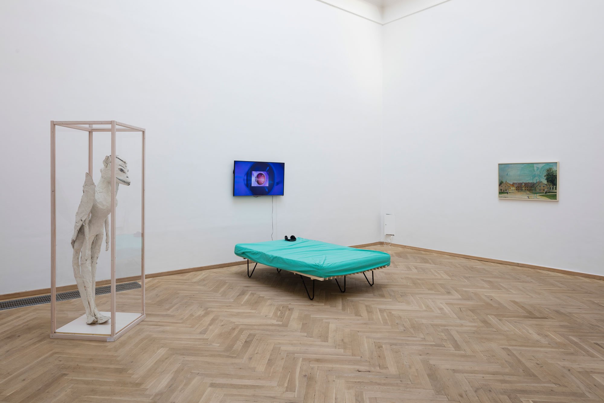 Men, tilbage til kunstinstitutionens hvide kube: De udstillingsrum, hvor individets fortælling er det primære, er sjældent hvide. Tænk fx på de kulturhistoriske museumsrum, de etnografiske samlingers mørke vægge, lyddøde inventar med gulvtæpper, møbler og hjemmelige hverdags-iscenesættelser. Her er mørket en form for mellemmenneskelig udvekslingskanal, en tunnel til bevidsthedens transport til en anden virkelighed. I mørket møder vi, i overført betydning, hinanden.