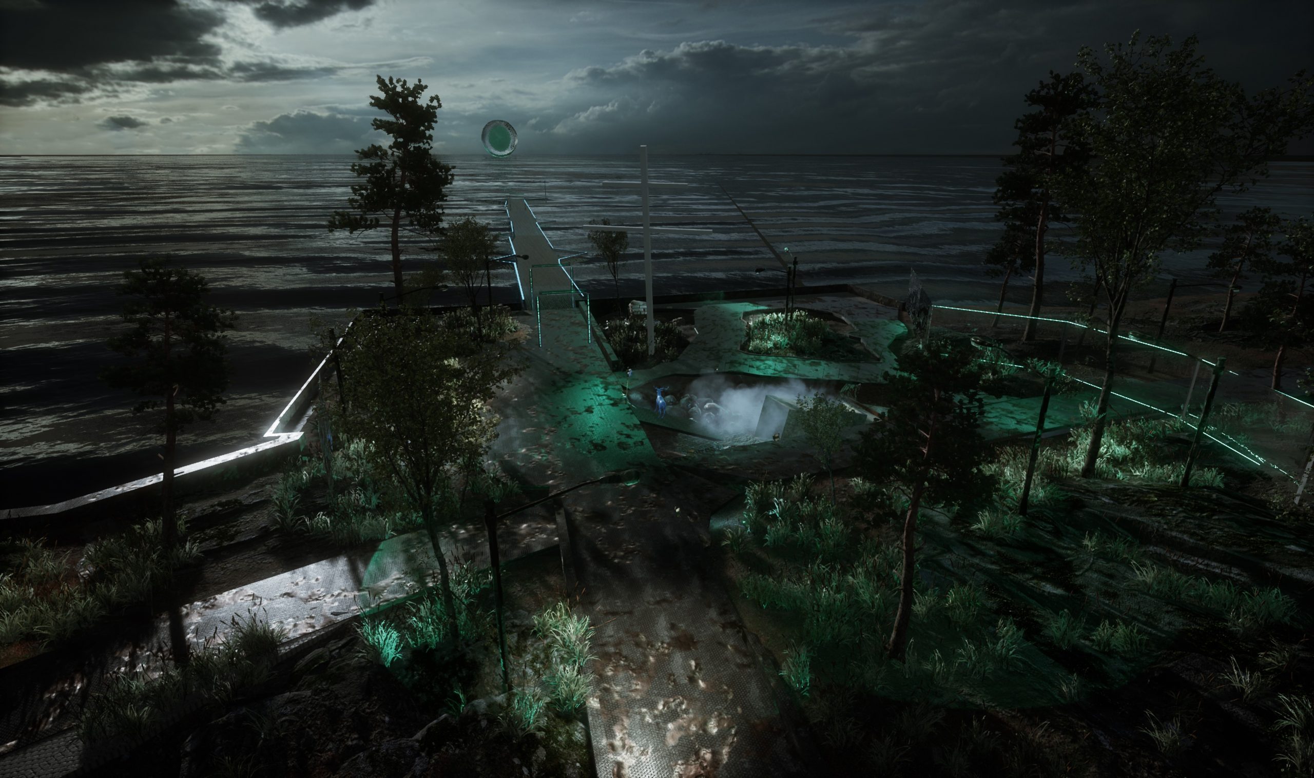 Jakob Kudsk Steensen arbejder ligeledes med VR-teknologi og immersive installationer, men også specifikt med environmental storytelling. Samtalen mellem Davies og Kudsk Steensen åbner op for virtual realitys historie i Norden, VR som kunstnerisk medie – samt et etisk spørgsmål om de miljømæssige implikationer ved at arbejde med nye teknologier, og de gamle forkastes.