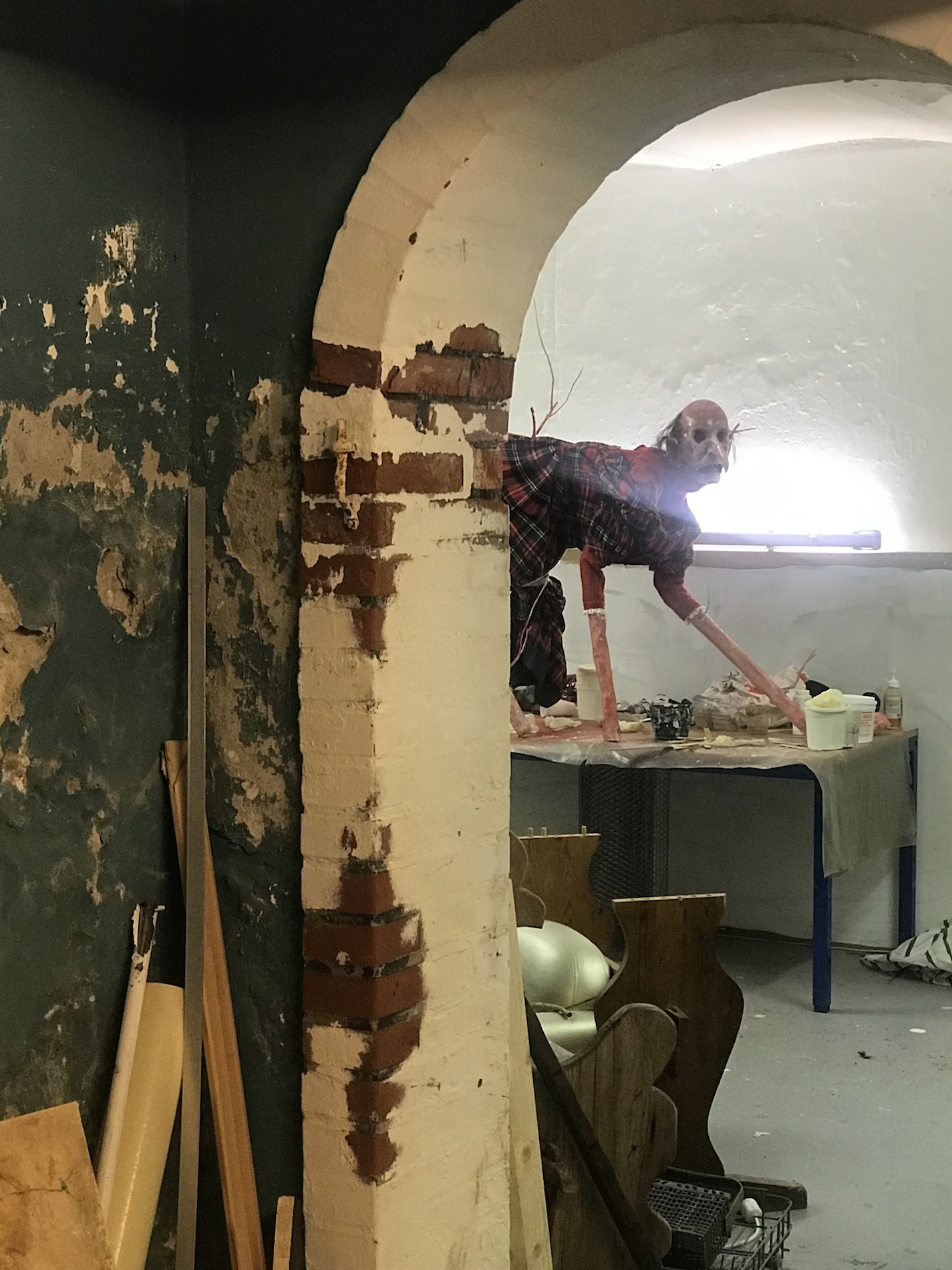 Begge kunstnere arbejder med det iscenesatte: Rolf Nowotnys værk er en rumlig installation med skulpturelle elementer, en scenisk fremstilling af et stykke almuehorror, hvor Mathias Sæderup går mere museologisk til værks med plancher og opstillinger, der dog også bruger teaterkulisser.