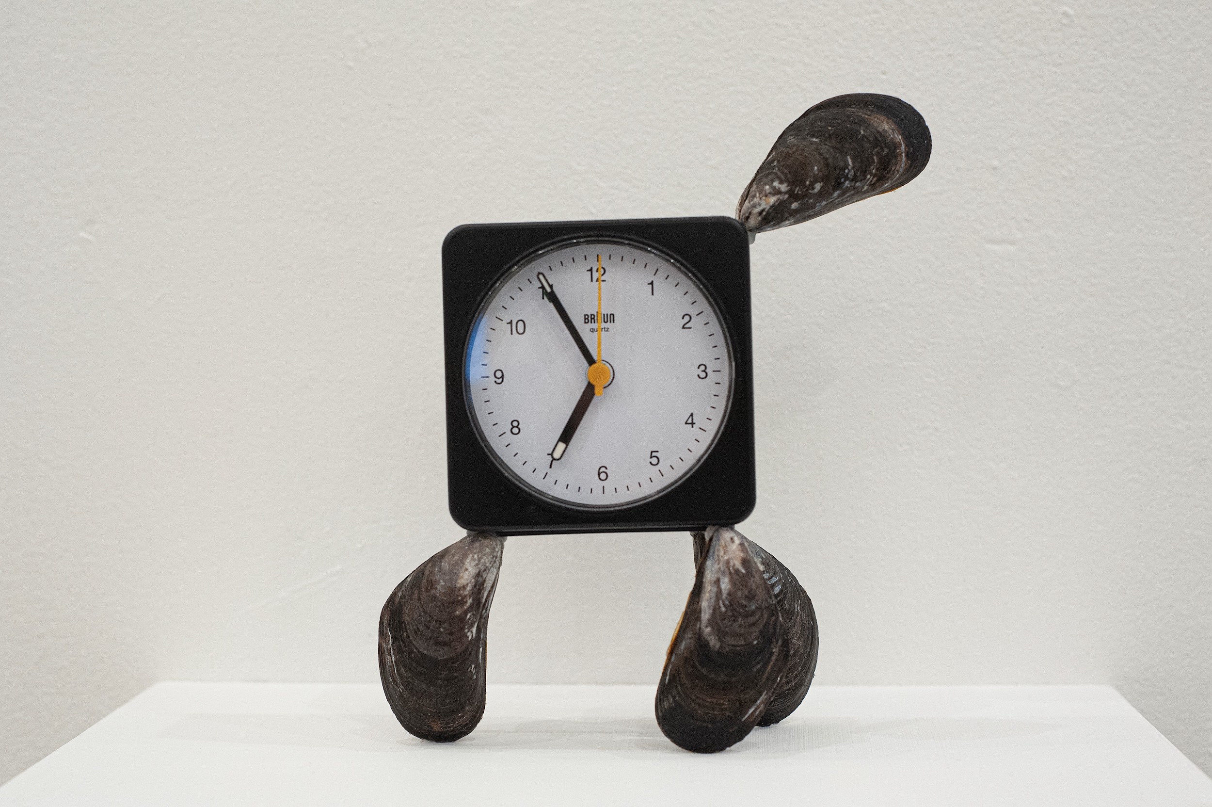 Tiden forstået abstrakt og gennem objekter. Det betyder, at mine værker ofte får en animeret kvalitet, et forslag til en handling, en tanke. Jeg arbejder også aktivt med humor; det er en måde for mig at få åbnet processen og værkerne op. Det hjælper mig til at få levendegjort objekterne, så de bliver lettere at tænke med og omkring.