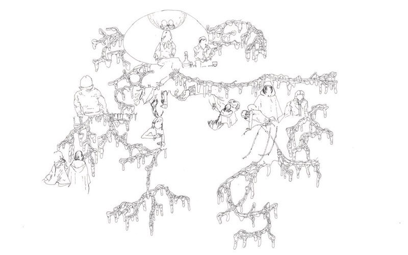 Moderne mytologi i tuschtegning